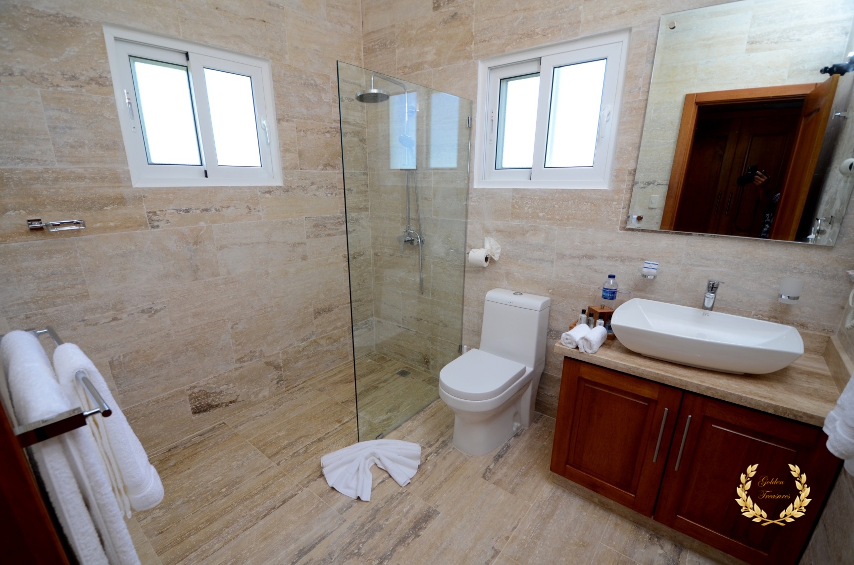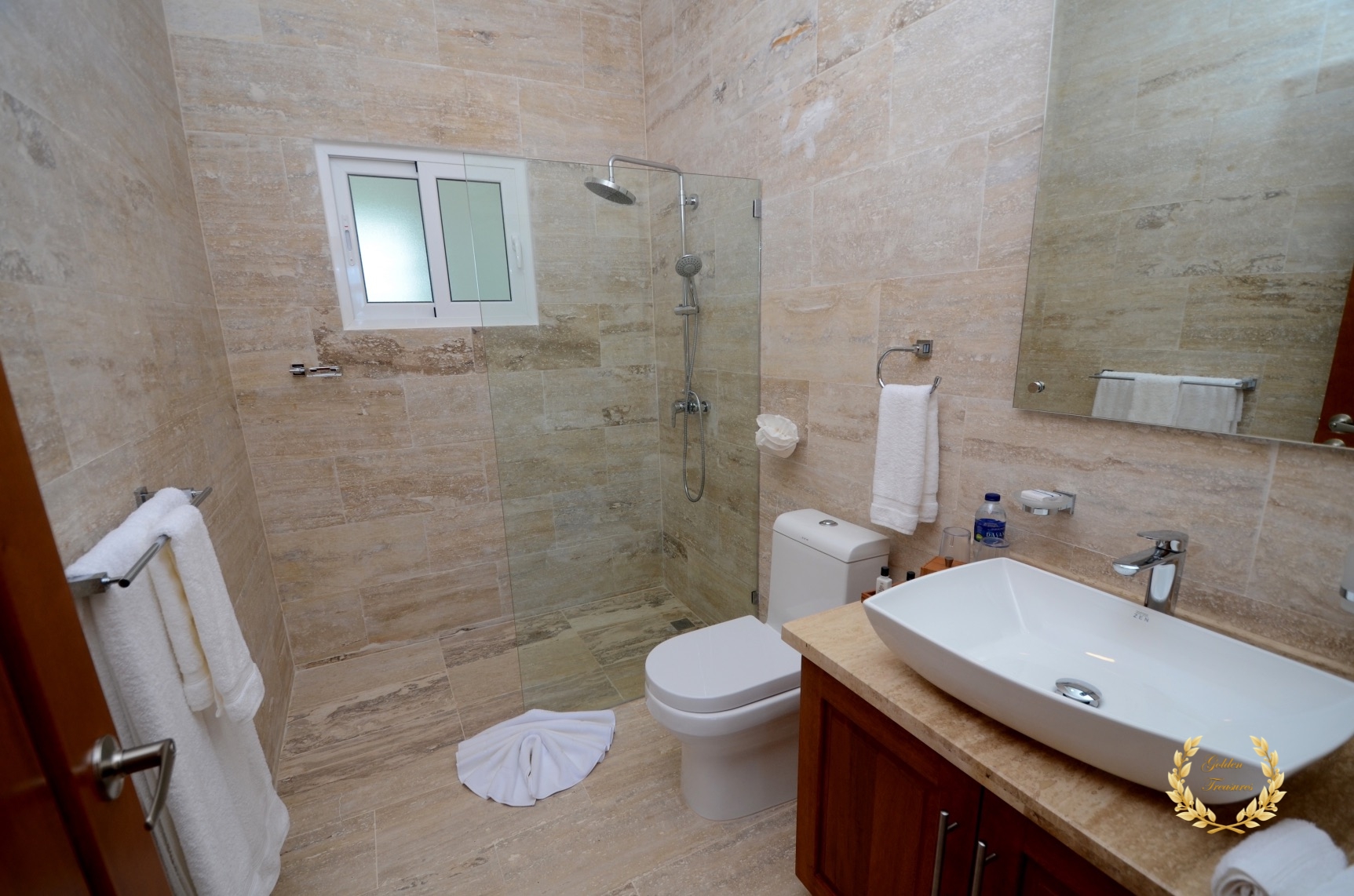 Each suite is finely decorated and includes A/C, TV, ceiling fan, blackout curtains, linens, towels, side lamps, safe deposit boxes and cedar-lined closets. The main suite bathroom includes double vanities, a fine retro-style bath tub and ocean views from the user perspective. The villa is located just 5 minutes away from the center of town and Sosua Beach, and about a 7 minute drive from Cabarete. Sosua fishing tours available via the concierge.